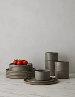 Refined lines, versatile design, and durable stoneware construction make the Friso dinnerware collection a favorite, from fine dining to everyday eating. The grooved edge is hand-painted for an artisanal touch that will fit perfectly into your carefully curated home decor.