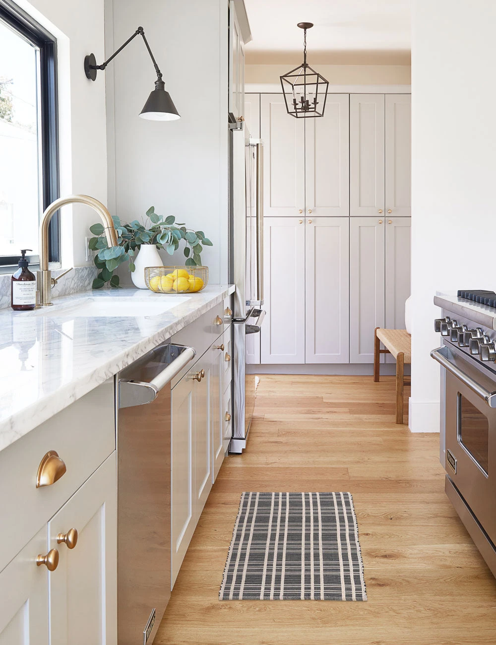 Made from 100% cotton, our machine washable Rika Mat has a wide checkerboard pattern in black and light gray hues. Its simple design blends with neutral-toned, minimalist decor, including light wood pieces and woven baskets. We love this mat for a cozy touch in your entryway, kitchen, or powder room.